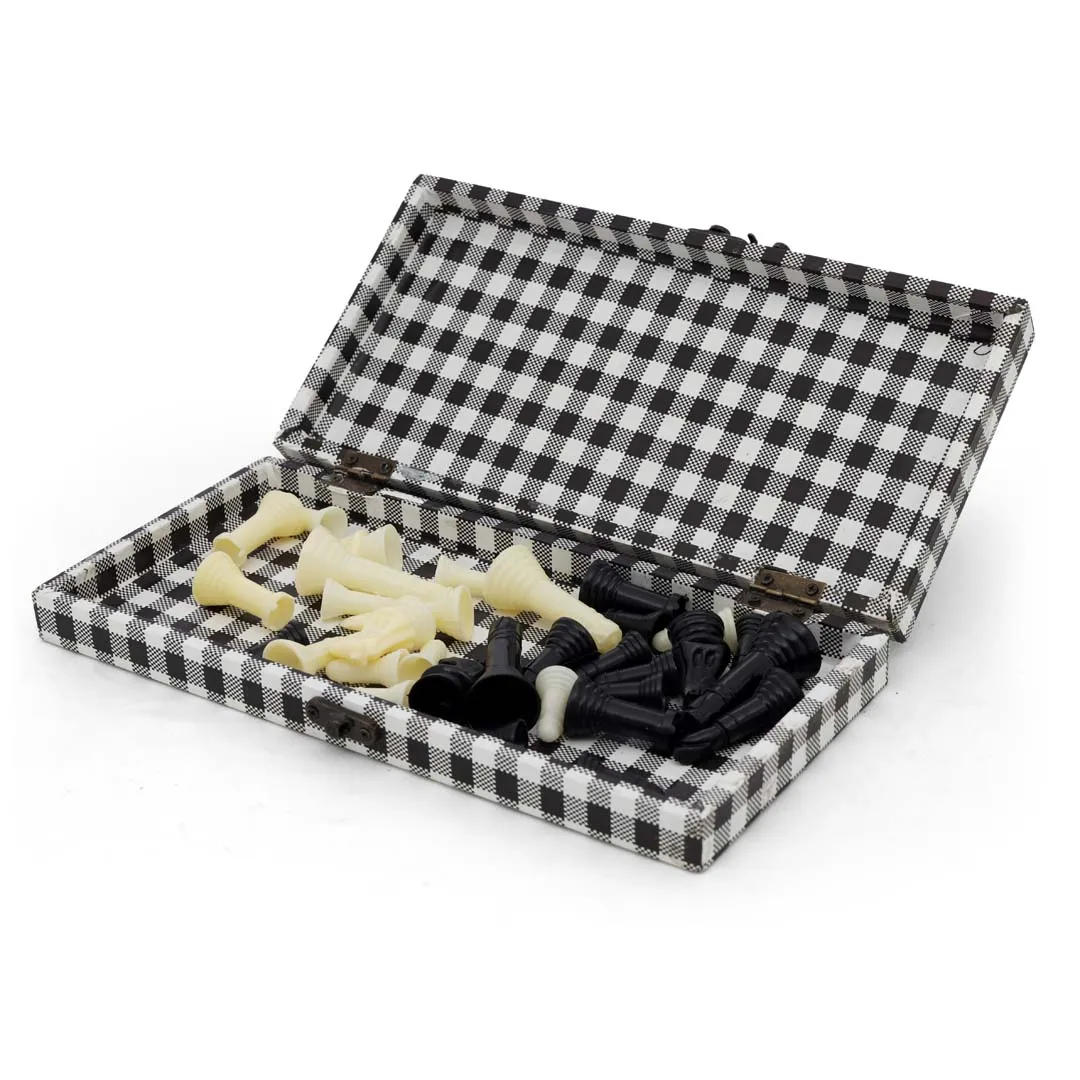 Things included a chess board, 16 pieces of each colour 1 king, 1 queen, 2 rooks, 2 bishops, 2 knights and 8 pawns. Total 32 pieces.